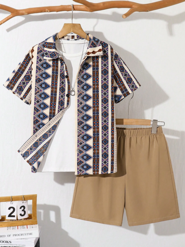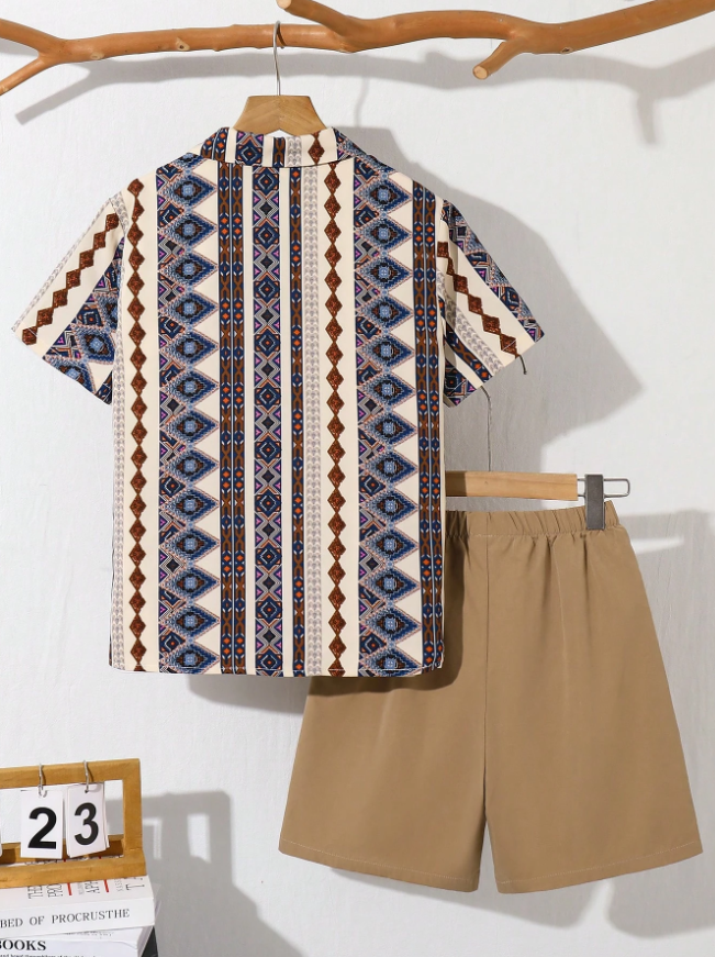 Bring a touch of global-inspired artistry to your little one's wardrobe! 🌍 This 2-piece set features a stunning vertical pattern of intricate geometric diamonds and ornamental borders, creating a look that is both sophisticated and full of character. 🎨✨