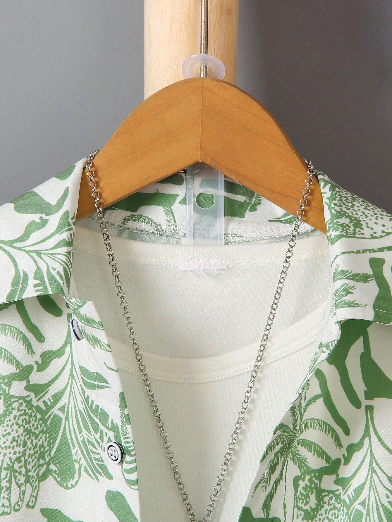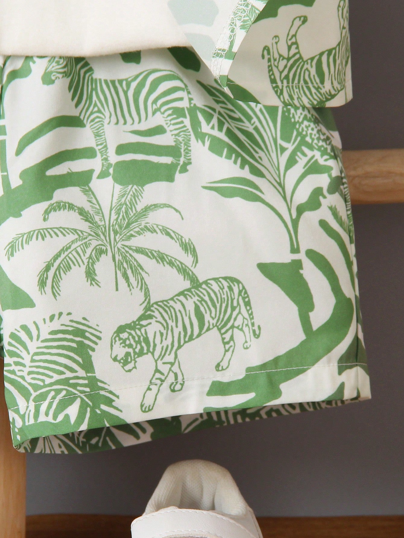 Green Tropical Print Shirt & Shorts Set For Boys