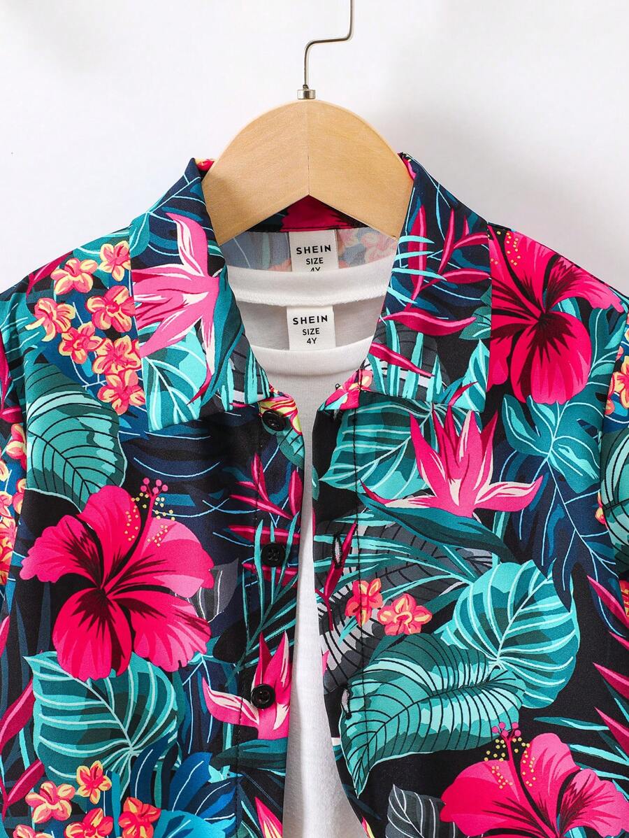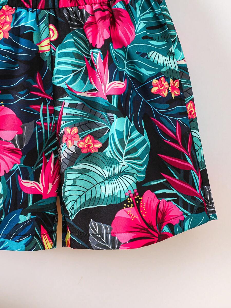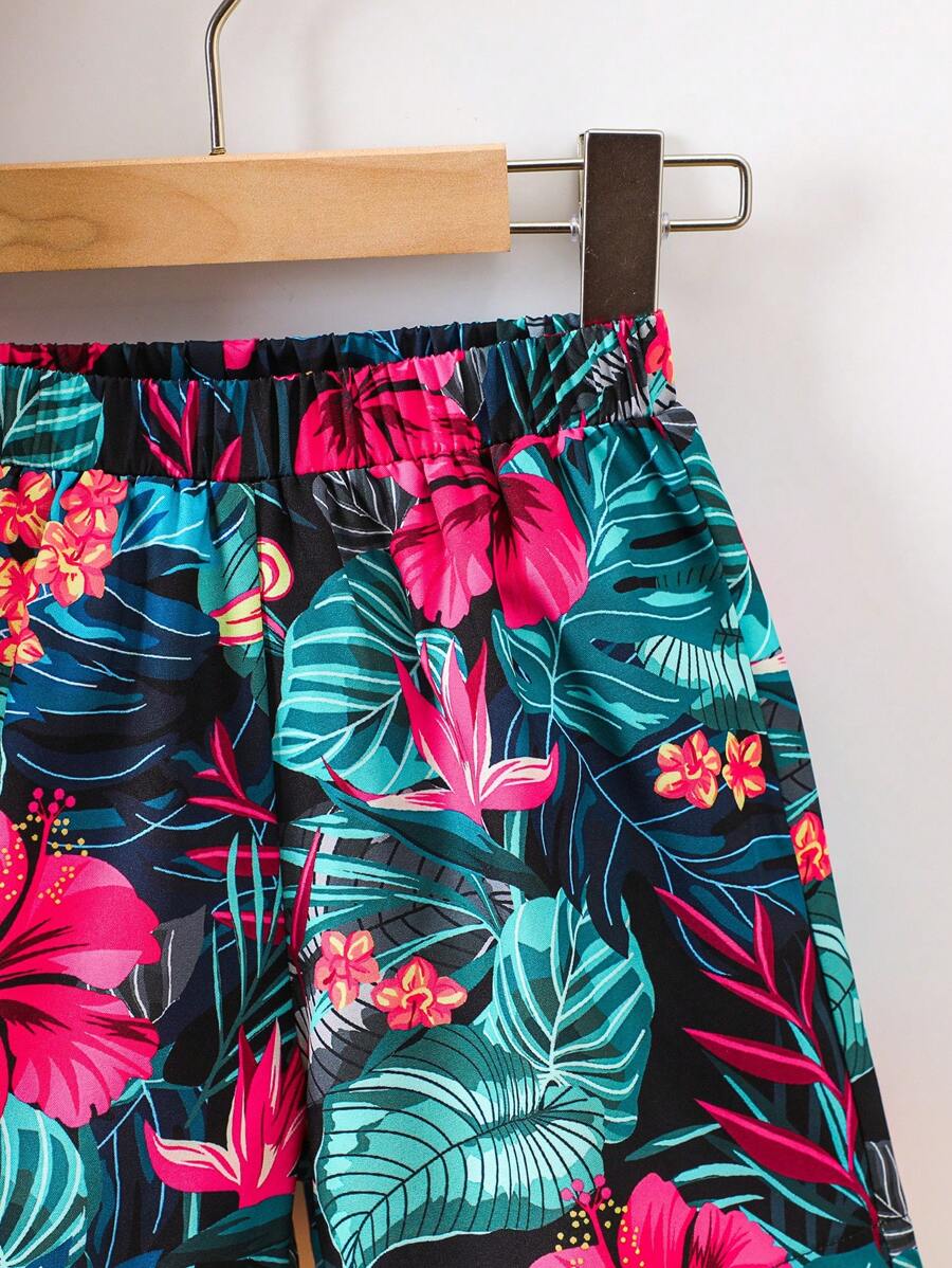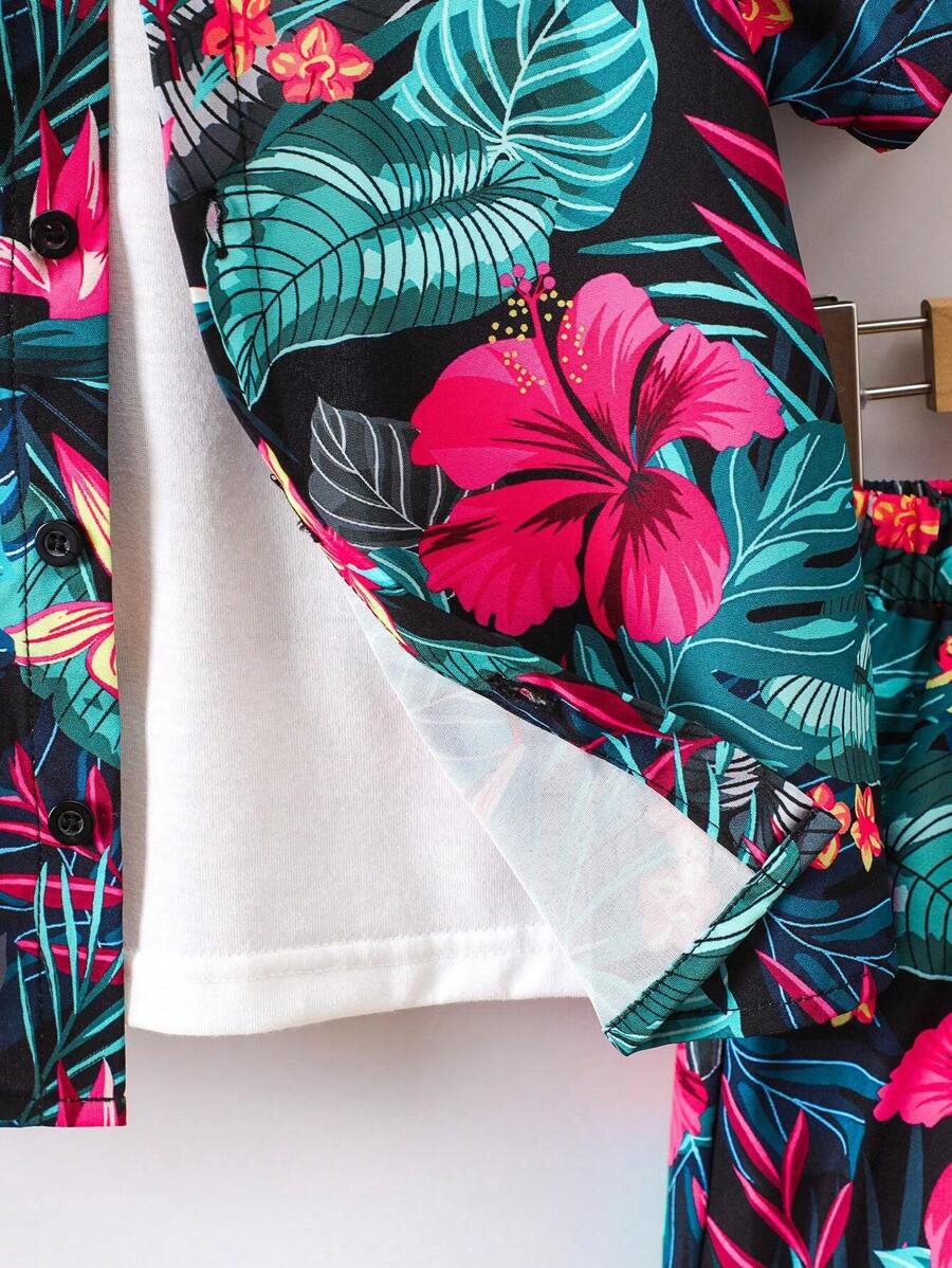 Multicolor Tropical Hibiscus Print Shirt & Shorts Set For Kids